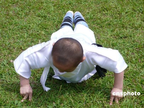 圖:大陸"大力神童"臺北表演一指禪俯臥撐(2)