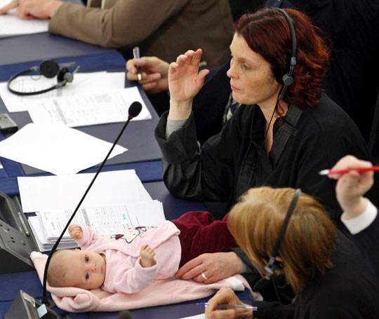 3月26日,丹麥議員漢娜·達(dá)爾在法國斯特拉斯堡參加歐洲議會會議,她的小寶寶也隨著她一起“出席”。