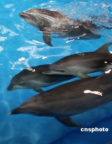 3月27日,北京海洋館十周年館慶紀念日,3只海豚幼仔首度公開與市民見面。這3只小海豚均為北京海洋館人工繁殖誕生,是原汁原味的“北京寶貝”。在北京海洋館十周年慶活動期間,游客可在鯨豚灣展區(qū)透過寬大的亞克力展窗看到小海豚在水下的全部生活狀態(tài)。中新社發(fā) 徐曦弋 攝