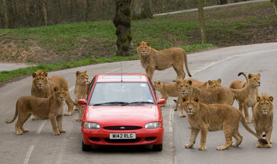 據(jù)英國媒體報(bào)道,游客駕駛著汽車在英國一家野生動物園觀光時(shí)被10多頭獅子圍困,司機(jī)把車門和窗戶緊緊關(guān)閉,以防動物襲擊。此時(shí),司機(jī)的表情還能否如觀光時(shí)一樣愉悅就不好說了。