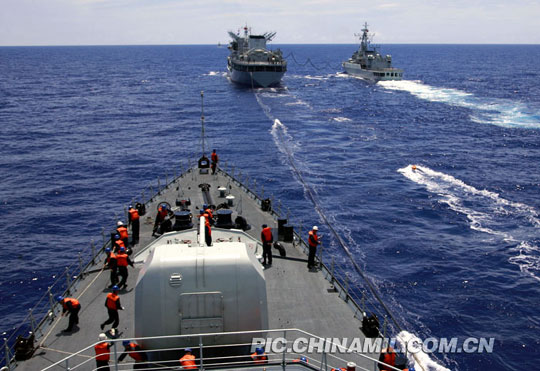 “牢記領(lǐng)袖囑托,忠實(shí)履行使命”。6月15日—30日,北海艦隊(duì)某驅(qū)逐艦支隊(duì)“石家莊”號導(dǎo)彈驅(qū)逐艦與兄弟部隊(duì)艦艇組成聯(lián)合編隊(duì)進(jìn)行遠(yuǎn)航訓(xùn)練。他們在復(fù)雜海域、復(fù)雜電磁環(huán)境中結(jié)合新大綱對復(fù)雜條件下導(dǎo)彈、火炮攻擊,支援受損艦、海上拖帶等多科目進(jìn)行實(shí)戰(zhàn)化訓(xùn)練,有效檢驗(yàn)和提高了部隊(duì)?wèi)?zhàn)斗力。 王洪建 特約通訊員 于文獻(xiàn) 攝