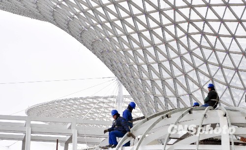 2010年1月22日,作為世博會“一軸四館”永久場館之一的世博軸工程正式竣工,這標(biāo)志著世博建設(shè)邁入新階段。世博軸是由地上二層、地下二層組成的立體交通樞紐,長約1045米,寬約130米,總占地面積約13萬平方米,總建筑面積25.1萬平方米,地下空間建筑面積約19萬平方米,地上建筑面積約6.1萬平方米。世博軸工程是2010年上海世博會的主入口和中央人行立體交通樞紐,是本屆世博會的地標(biāo)性建筑。世博軸工程的竣工標(biāo)志著工程建設(shè)階段的完成,即將邁入運(yùn)營準(zhǔn)備階段。預(yù)計(jì)4月15日之前完成運(yùn)營人員培訓(xùn)、功能用房和商業(yè)裝修。并計(jì)劃4月15日-4月底進(jìn)行試運(yùn)營。中新社發(fā) 沈春琛 攝
