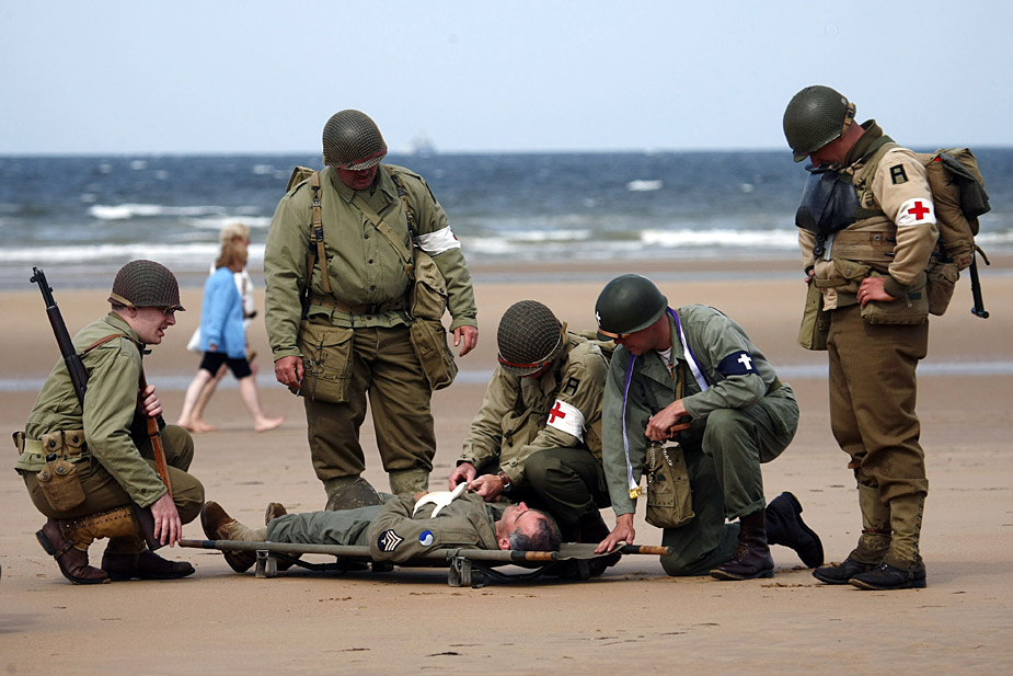 美英法等國(guó)士兵穿上二戰(zhàn)時(shí)期軍服在法國(guó)諾曼底海灘舉行“登陸戰(zhàn)”紀(jì)念諾曼底登陸65周年。