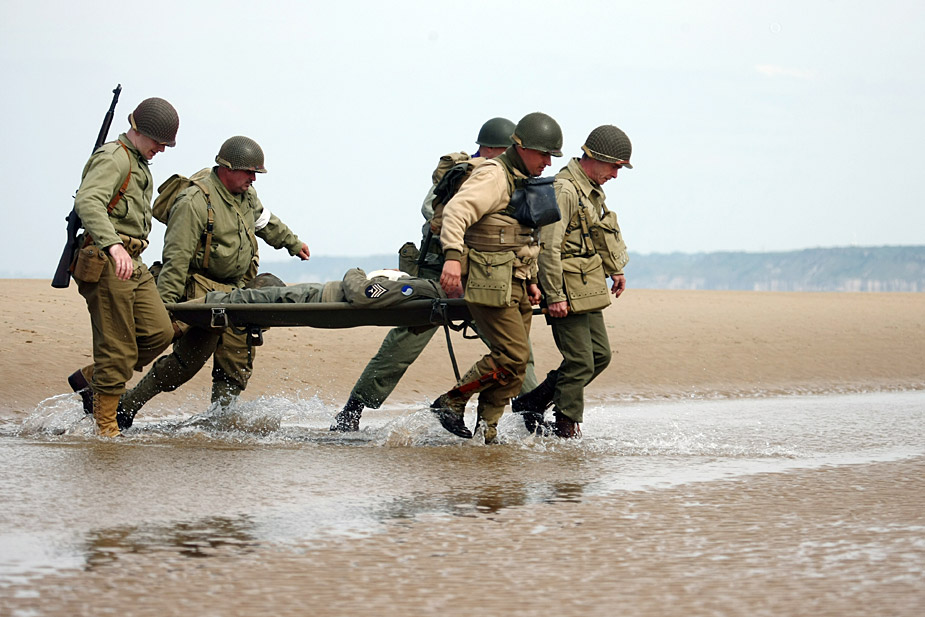 美英法等國士兵穿上二戰(zhàn)時期軍服在法國諾曼底海灘舉行“登陸戰(zhàn)”紀念諾曼底登陸65周年。