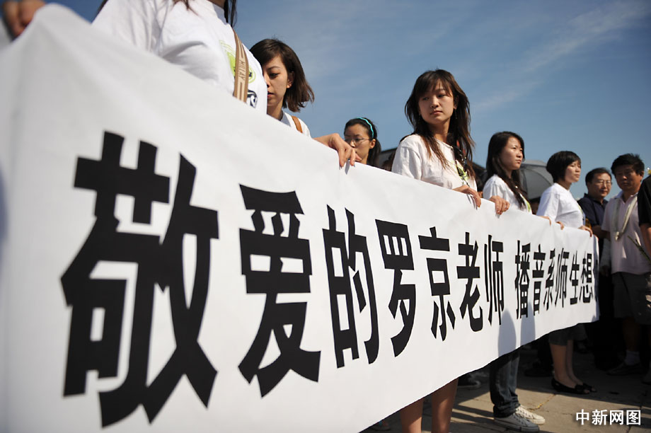 中國傳媒大學(xué)播音系學(xué)生送別師兄羅京。中新網(wǎng)記者 金碩 攝