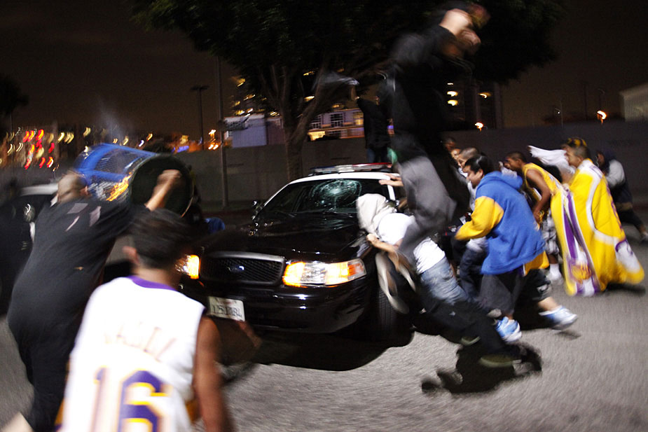 在洛杉磯湖人隊15日奪得本年度NBA總冠軍后,洛杉磯球迷涌上街頭歡慶勝利,但在慶祝過程中偶發(fā)暴力事件,警方逮捕了至少8人。