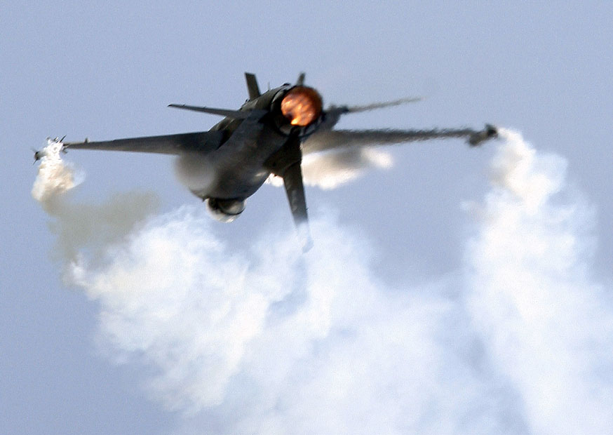 圖為美國(guó)F-16戰(zhàn)斗機(jī)進(jìn)行飛行表演。