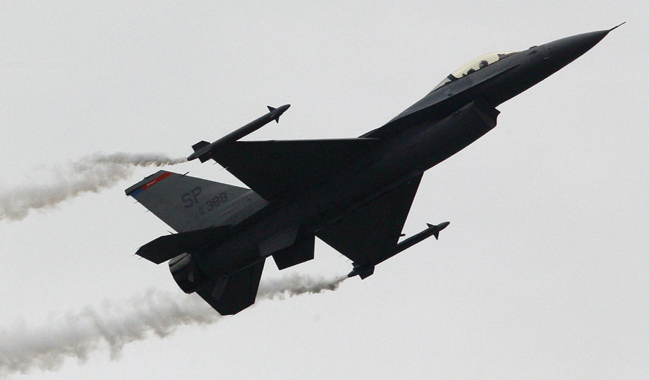 圖為美國F-16戰(zhàn)斗機進行飛行表演。