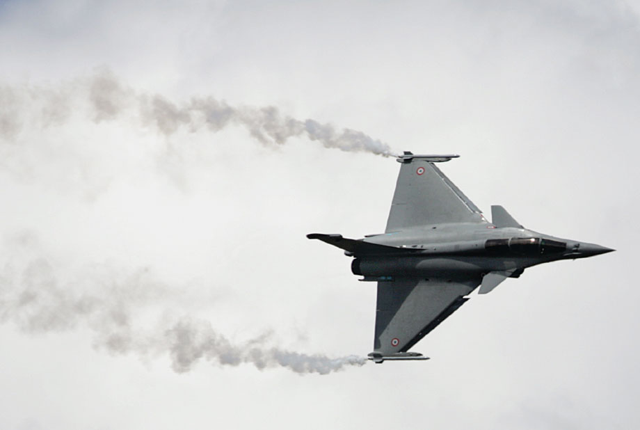 圖為法國(guó)陣風(fēng)戰(zhàn)斗機(jī)進(jìn)行飛行表演。