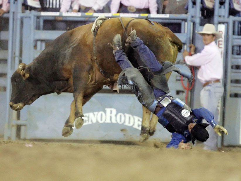 美國騎牛大賽"人仰牛翻"令人驚心動(dòng)魄