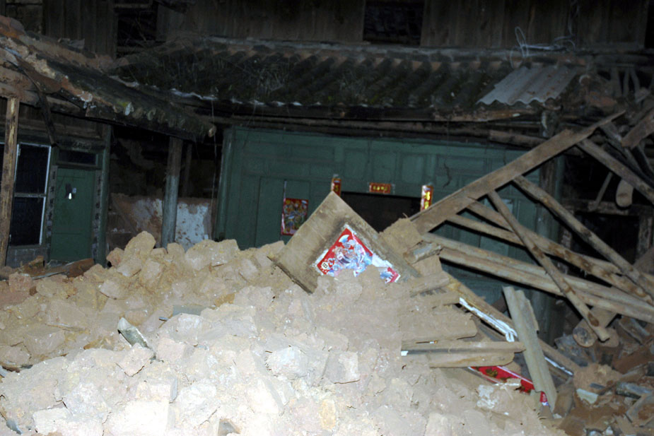 圖為此次地震中受災(zāi)最為嚴(yán)重的官屯鄉(xiāng)官屯村受損較為嚴(yán)重的民房。中新社發(fā) 保旭 攝