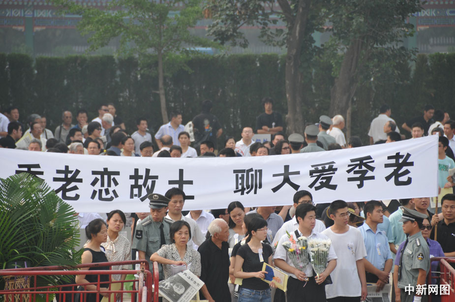 7月19日,著名國學大師季羨林遺體告別儀式在北京八寶山革命公墓東禮堂舉行,社會各界人士紛紛前往哀悼。中新網記者 康登淋 攝>>更多報道