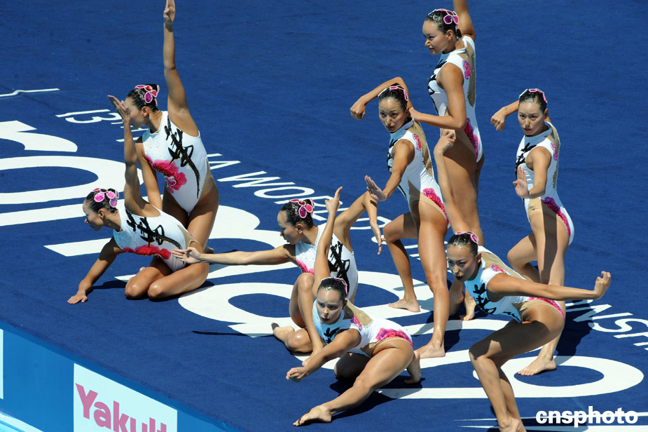 中國(guó)花游姑娘功夫動(dòng)作亮相羅馬世錦賽。中新社發(fā) 廖攀 攝