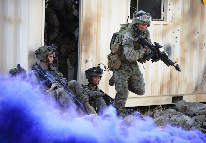 7月22日,澳大利亞羅克漢普頓,美國(guó)海軍陸戰(zhàn)隊(duì)與澳大利亞士兵參加“馬刀附身符行動(dòng)”聯(lián)合巷戰(zhàn)軍事演習(xí)。此次演習(xí)的目的旨在提高兩國(guó)軍隊(duì)的巷戰(zhàn)作戰(zhàn)能力及美澳之間的協(xié)同作戰(zhàn)水平。