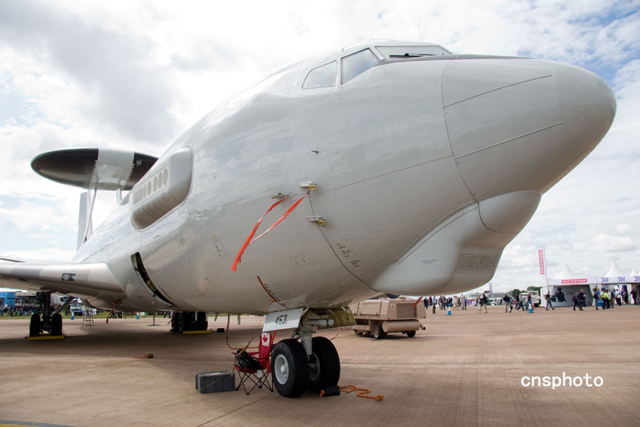 2009年7月,“2009英國(guó)費(fèi)爾福德航展”在英格蘭費(fèi)爾福德開(kāi)展。圖為北約駐盧森堡的E-3A預(yù)警機(jī)在此次航展上亮相。中新社發(fā) 潘禹 攝
