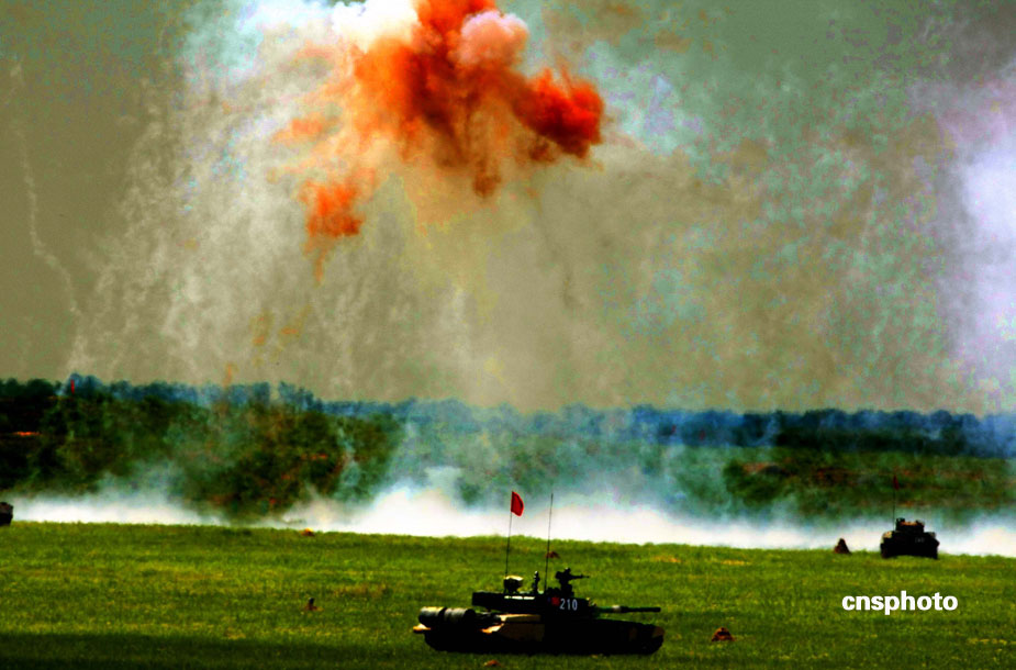 中國(guó)、俄羅斯兩軍總參謀長(zhǎng),7月23日上午到沈陽軍區(qū)洮南合同戰(zhàn)術(shù)訓(xùn)練基地,觀看“和平使命2009”聯(lián)合反恐軍事演習(xí)。雙方以陸軍和空軍為主,中方參演部隊(duì)包括1個(gè)陸軍戰(zhàn)斗群和1個(gè)空軍戰(zhàn)斗群。俄方參演兵力包括1個(gè)陸軍加強(qiáng)摩步營(yíng)、1個(gè)空降突擊連和部分空軍兵力,雙方投入兵力兩千多人。中新社發(fā) 宋吉河 攝