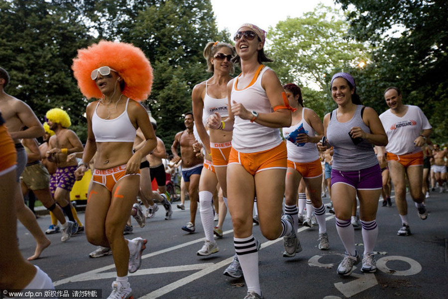 2009年7月,美國(guó)紐約,約200人參加了一場(chǎng)特殊的穿內(nèi)褲跑步大賽。選手們身穿內(nèi)衣褲從中央公園出發(fā)。比賽結(jié)束后,他們打破了“世界上人數(shù)最多的穿內(nèi)褲跑步大賽”的吉尼斯世界紀(jì)錄。