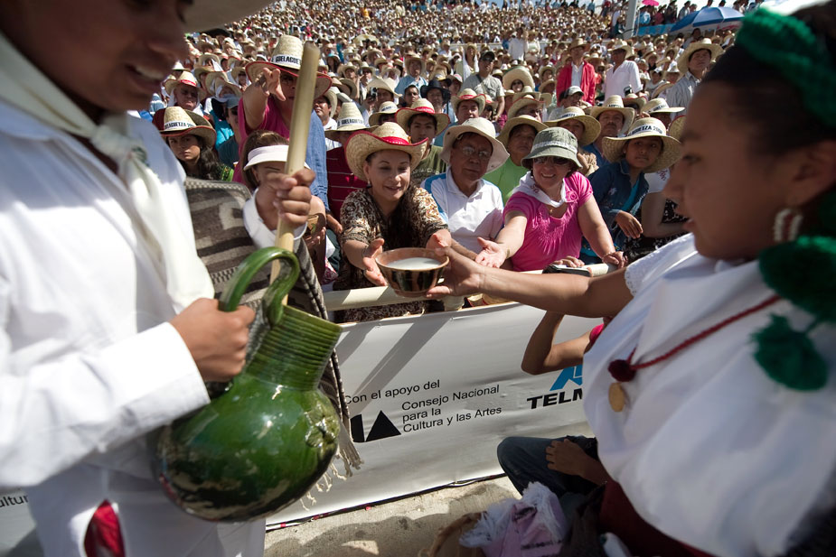 每年7月的最后兩個星期一是瓦哈卡聞名世界的“蓋拉蓋查節(jié)(Guelaguetza)”,來自瓦哈卡州各地、各具特色的印第安部落推選出具有代表性的舞蹈隊,在瓦哈卡城外的弗爾丁山上載歌載舞,同時也為前來觀看的世界各地游客獻上本部落的土特產(chǎn)。