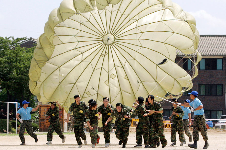 7月29日,韓國數(shù)百名學生和市民在位于首爾的美軍基地參加軍訓夏令營,此次軍訓夏令營共為期四天。