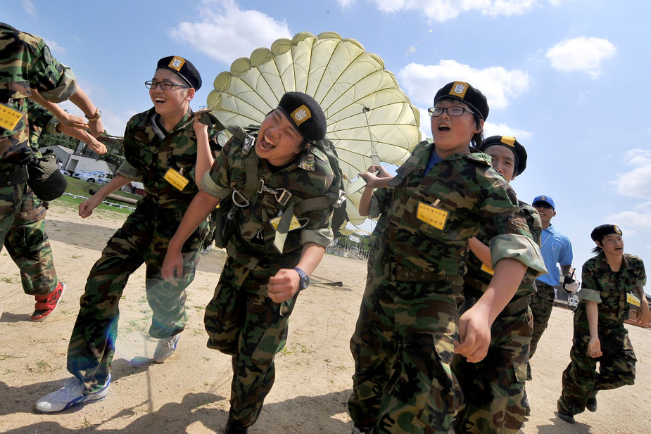 7月29日,韓國數(shù)百名學(xué)生和市民在位于首爾的美軍基地參加軍訓(xùn)夏令營,此次軍訓(xùn)夏令營共為期四天。