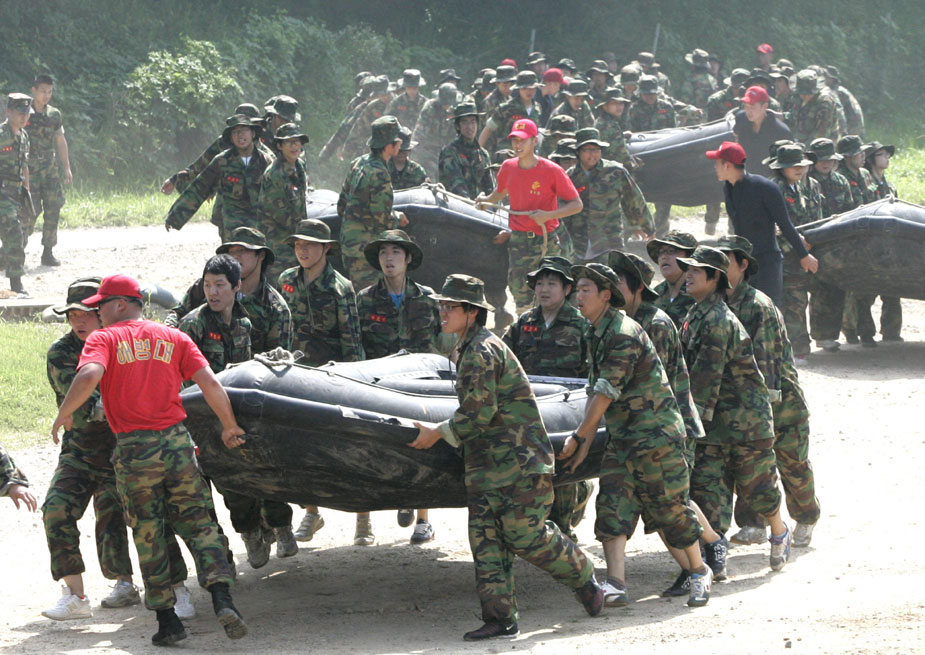 當?shù)貢r間7月30日,在首爾的美軍基地參加軍訓夏令營的韓國數(shù)百名學生來到金浦進行了泥地訓練,場面十分激烈甚至殘酷。