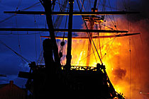 仿古船被火焚毀