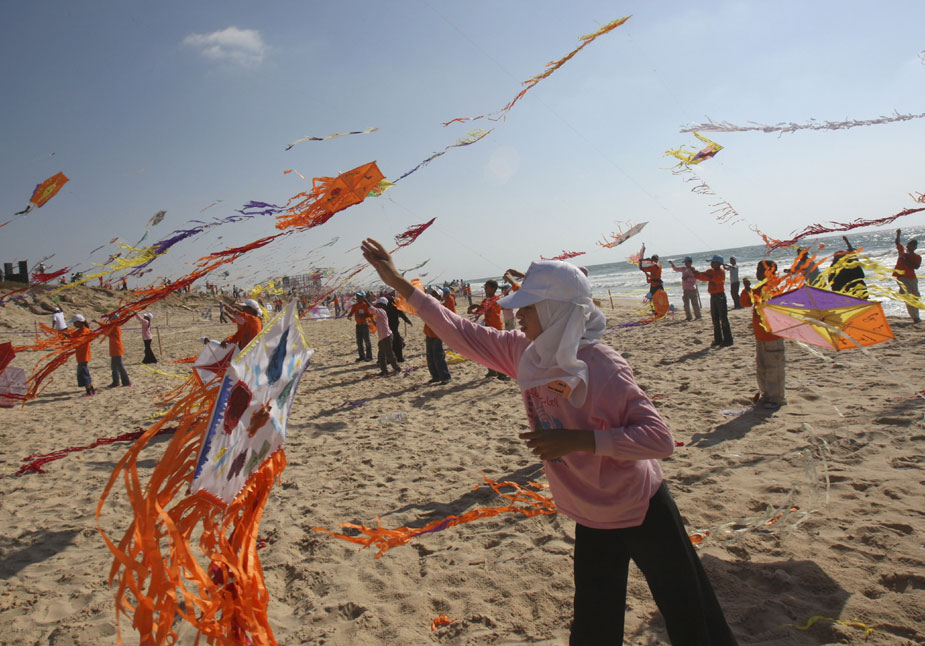 7月30日,加沙地帶的6000名巴勒斯坦兒童共同在加沙北部的海灘上放飛了3000多只五顏六色的風(fēng)箏,打破了同時(shí)放飛最多只風(fēng)箏的吉尼斯世界紀(jì)錄。