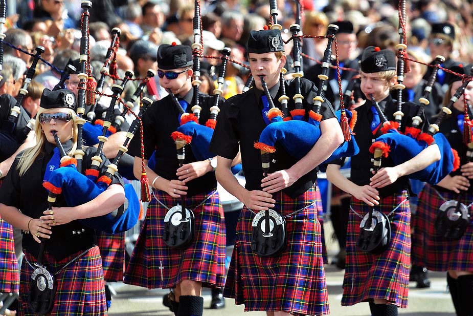 8月2日,蘇格蘭梅西爾風(fēng)笛樂隊(duì)的藝術(shù)家們在洛里昂克爾特文化節(jié)上進(jìn)行表演。