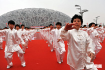 8月8日,全國首個(gè)“全民健身日”北京主會(huì)場(chǎng)啟動(dòng)儀式上,三萬多群眾進(jìn)行太極拳展示活動(dòng),在世界吉尼斯總部認(rèn)證官員的見證下成功打破世界紀(jì)錄。 中新網(wǎng)記者 金碩 攝