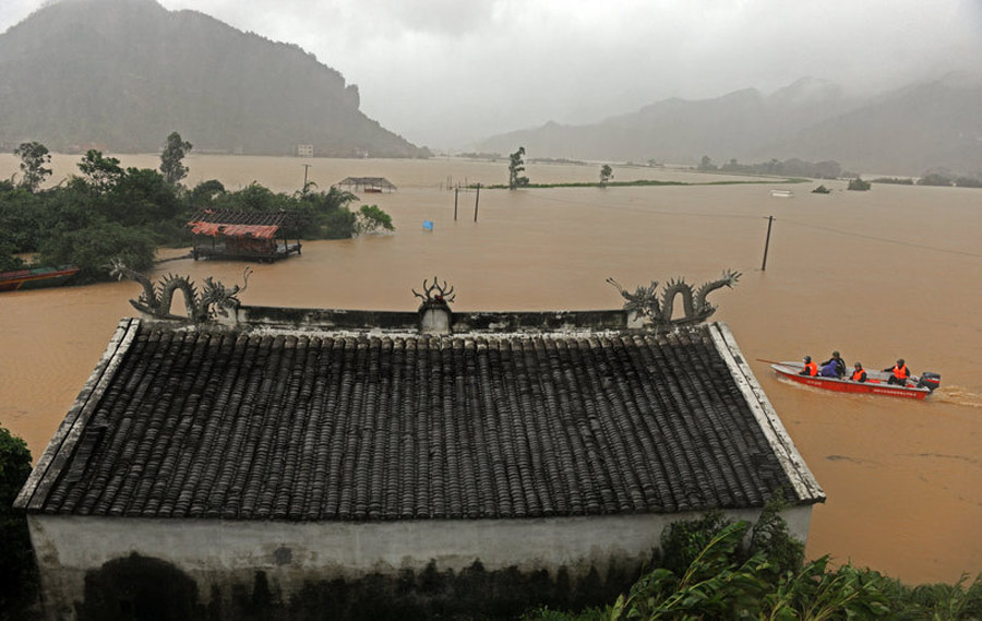 2009年8月9日,浙江溫州蒼南的附近農村受臺風大暴雨影響,大片村莊被淹。李頎拯/CFP