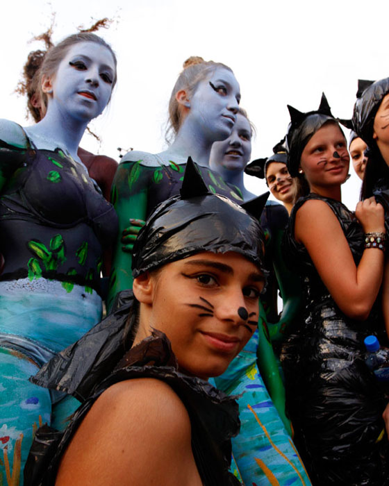 圖為參加狂歡節(jié)的人們在臉上進(jìn)行“涂鴉”。