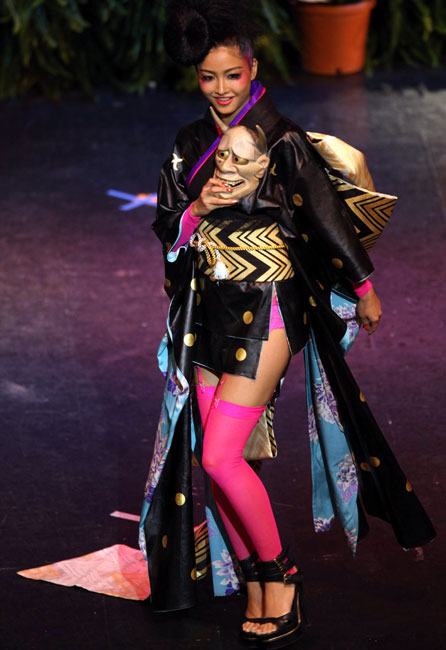 8月10日,2009年世界小姐大賽上,來(lái)自84個(gè)國(guó)家和地區(qū)的佳麗進(jìn)行民族服飾的展示,各國(guó)佳麗分別穿著含有自己民族風(fēng)格元素的時(shí)尚晚裝亮相,現(xiàn)場(chǎng)頓時(shí)色彩斑斕,美不勝收。