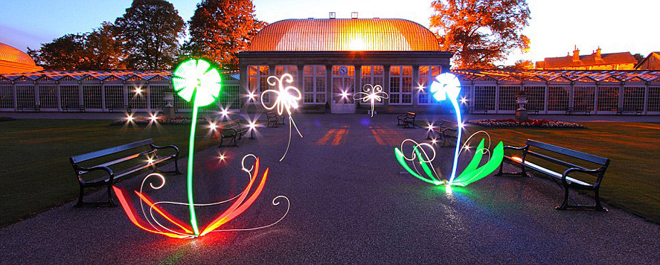 攝影師Michael Bosanko在英國植物園拍攝的名為“插花藝術(shù)”的光涂鴉照片。