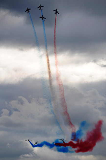 8月21日,在俄羅斯茹科夫斯基市舉行的第九屆國際航空航天展覽會上,法國著名的“法蘭西巡邏兵”飛行表演隊進(jìn)行了精彩的飛行表演。