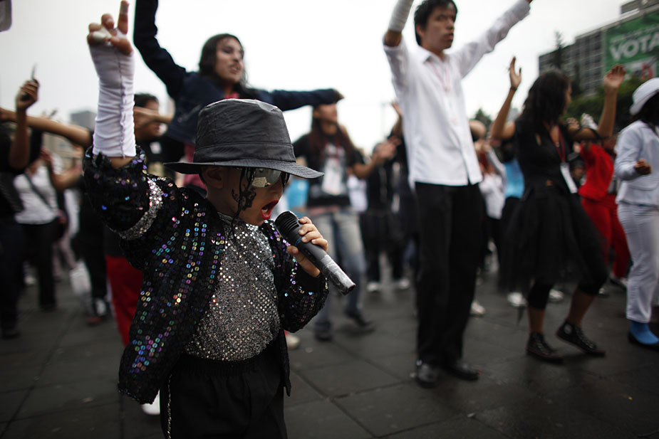 8月29日,逾萬名墨西哥人在墨西哥城廣場同時(shí)跳舞,用以紀(jì)念邁克爾·杰克遜第51個(gè)“生日”,同時(shí)也試圖打破同時(shí)跳舞人數(shù)最的吉尼斯世界紀(jì)錄。圖片來源:中國新聞網(wǎng)