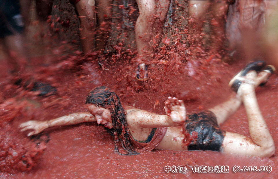 8月26日,西班牙東南部小鎮(zhèn)Bunol當(dāng)日迎來(lái)傳統(tǒng)的西紅柿節(jié)。大約4萬(wàn)名狂歡者在1小時(shí)內(nèi)扔掉了11萬(wàn)公斤西紅柿。圖片來(lái)源:中國(guó)新聞網(wǎng)