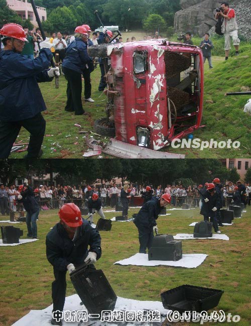 9月1日,一群全副武裝、手持鐵錘的都市人在長沙世界之窗滑草坪上瘋狂砸車,以此宣泄心中的壓力。圖片來源:中國新聞網