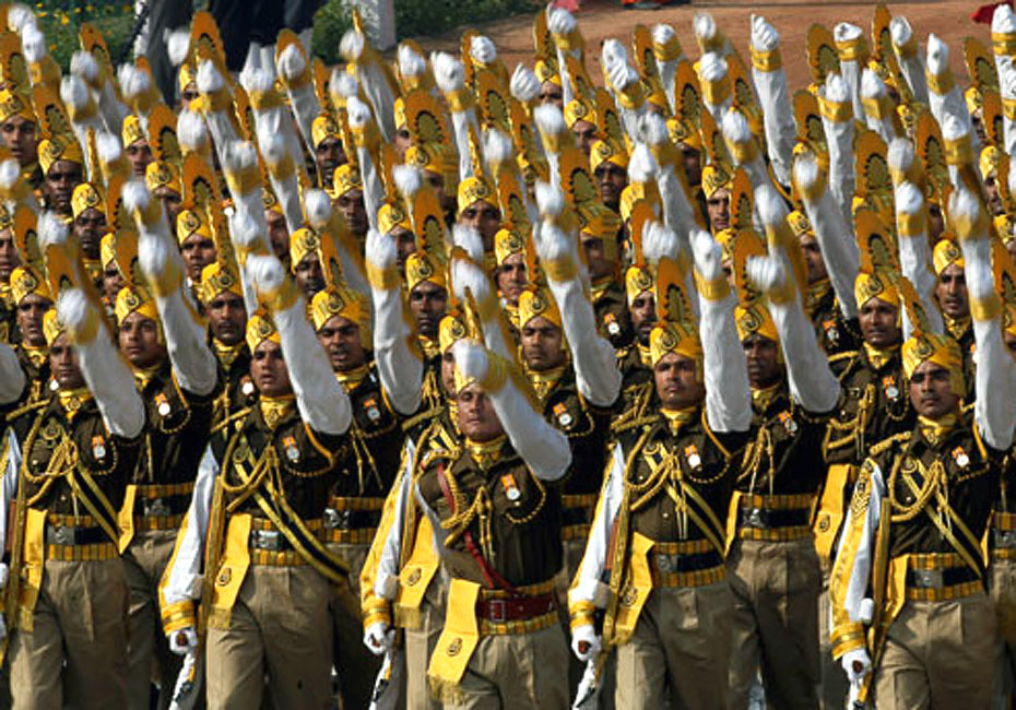 2009年1月26日,在印度首都新德里舉行第60屆國慶節(jié)慶;顒樱鞅N部隊在閱兵儀式上展示先進武器。