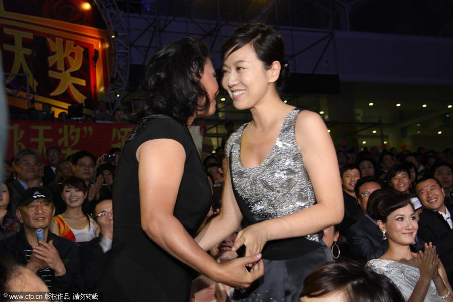 第二十七屆“飛天獎(jiǎng)”9月8日在水立方落幕。閆妮、薩日娜,兩人也是因?yàn)閮?yōu)秀電視劇作品《北風(fēng)那個(gè)吹》、《闖關(guān)東》而榮獲殊榮。圖片來(lái)源:CFP