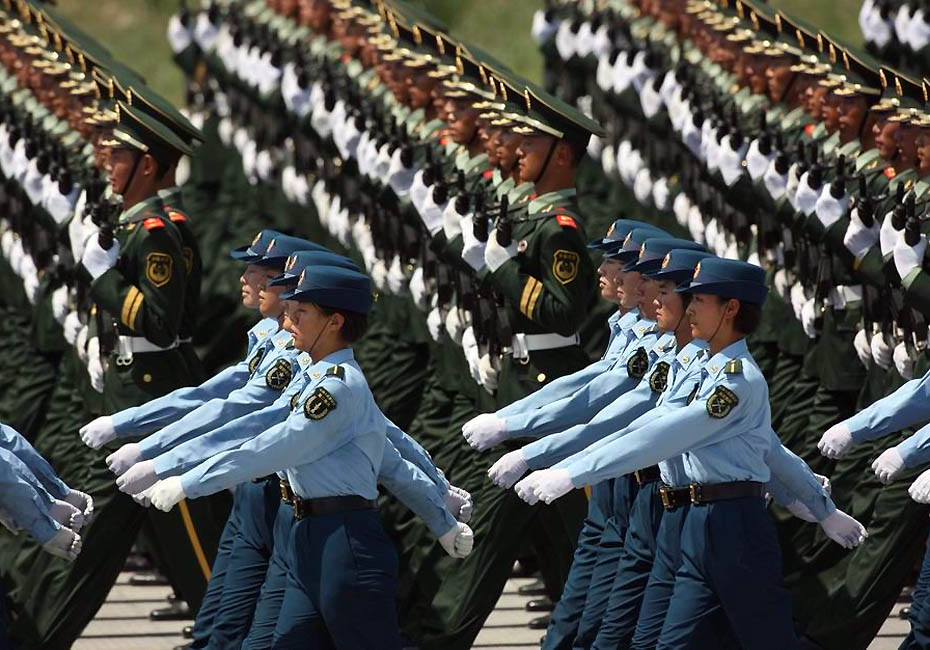 國(guó)慶60周年閱兵方陣中有三支“娘子軍”:三軍女兵方隊(duì)、女民兵方隊(duì)、女飛行員梯隊(duì)。這是新中國(guó)歷次閱兵中女兵方隊(duì)最多的一次,其中三軍女兵方隊(duì)和女飛行員梯隊(duì)是首次參加。圖片來源:新華網(wǎng)