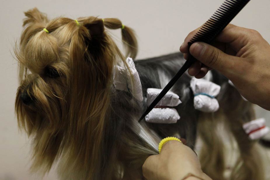 當(dāng)?shù)貢r(shí)間9月17日,在墨西哥首都墨西哥城舉行了2009國際小狗競選大賽。眾多參賽的小狗紛紛“梳妝打扮”準(zhǔn)備參加國際小狗競選。圖片來源:中國新聞網(wǎng)