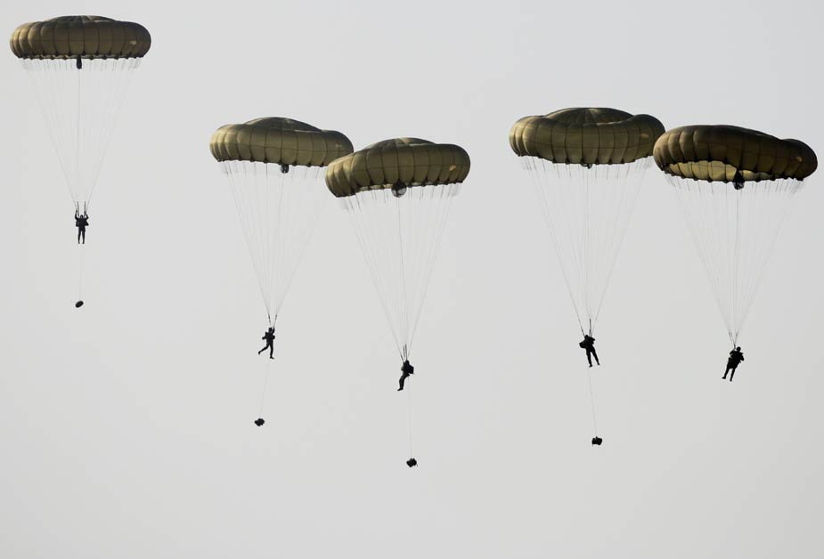 9月19日,英國(guó)空降兵在荷蘭埃德附近進(jìn)行傘降表演,紀(jì)念二戰(zhàn)期間盟軍最大規(guī)模的空降作戰(zhàn)——“市場(chǎng)花園”行動(dòng)65周年。圖片來源:中國(guó)新聞網(wǎng)