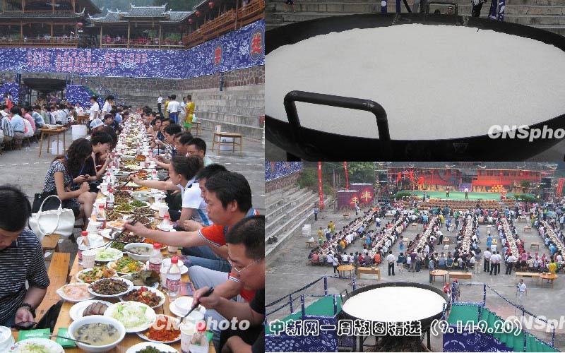 9月14日,萬人參與、規(guī)模巨大的“天下第一合攏宴”在湖南懷化中國侗文化城等5個宴會場快樂開餐。圖片來源:中國新聞網