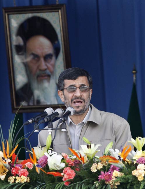 9月22日,伊朗士兵在德黑蘭舉行的紀(jì)念伊朗和伊拉克戰(zhàn)爭爆發(fā)29周年儀式上接受檢閱。1980年9月22日,伊朗和伊拉克兩國爆發(fā)戰(zhàn)爭,史稱“兩伊戰(zhàn)爭”。圖為伊朗總統(tǒng)艾哈邁迪-內(nèi)賈德在儀式上講話。