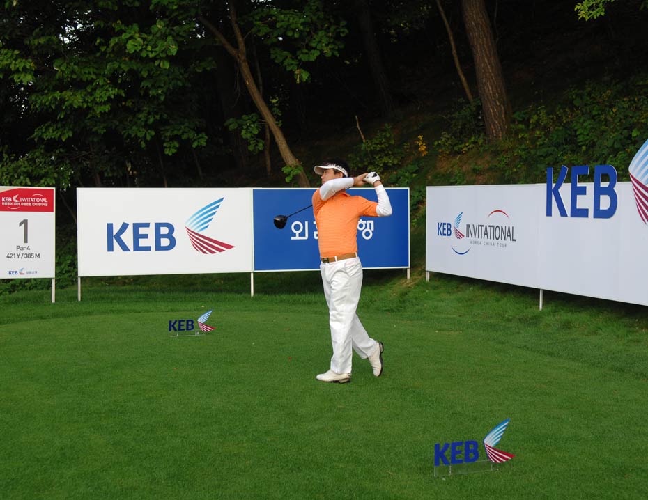 2009“韓國(guó)KEB銀行”中韓職業(yè)高爾夫球巡回賽韓國(guó)站于今天在韓國(guó)OSTAR高爾夫球俱樂(lè)部正式開(kāi)桿,有47名球員代表中國(guó)參賽。圖為選手們上場(chǎng)第一天,揮桿開(kāi)打的場(chǎng)面。