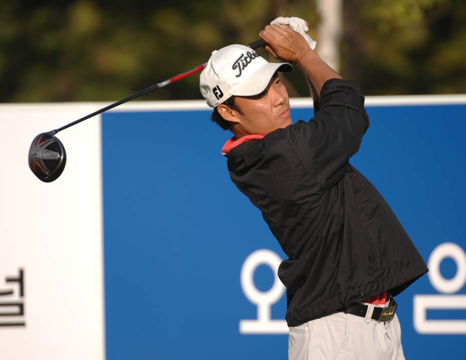 2009“韓國KEB銀行”中韓職業(yè)高爾夫球巡回賽韓國站于今天在韓國OSTAR高爾夫球俱樂部正式開桿,有47名球員代表中國參賽。圖為選手們上場第一天,揮桿開打的場面。