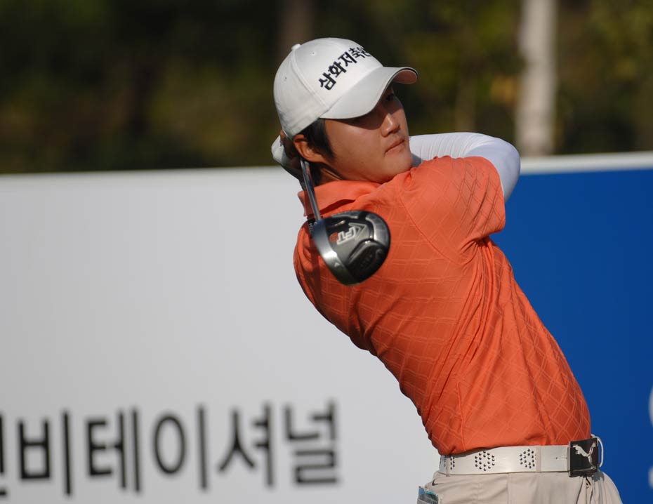 2009“韓國KEB銀行”中韓職業(yè)高爾夫球巡回賽韓國站于今天在韓國OSTAR高爾夫球俱樂部正式開桿,有47名球員代表中國參賽。圖為選手們上場第一天,揮桿開打的場面。