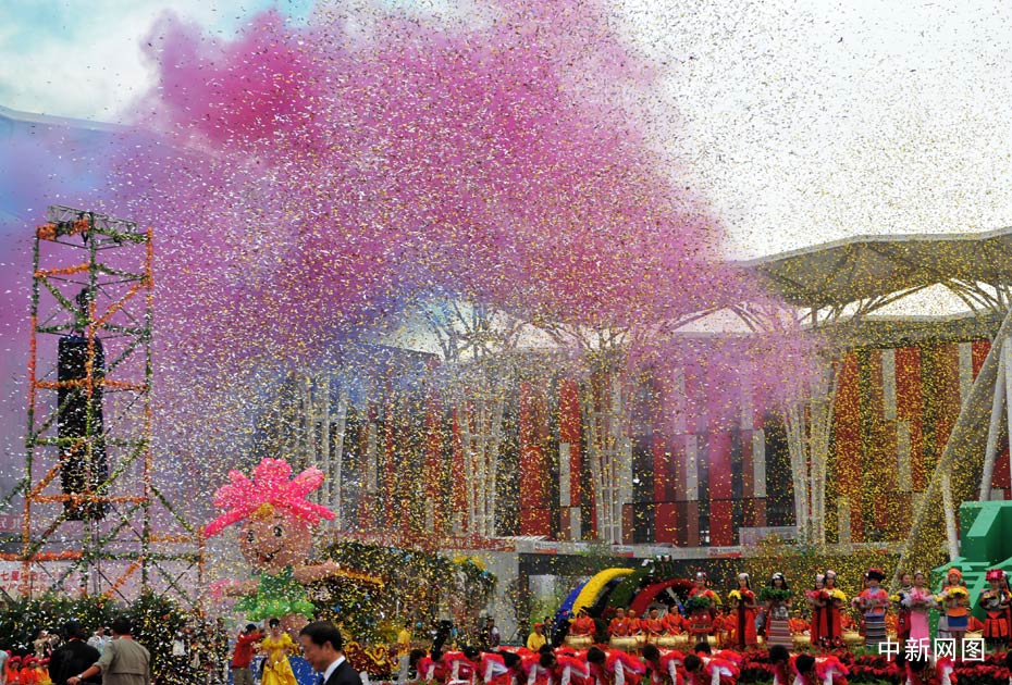 9月26日,第七屆中國花卉博覽會在北京順義主場館廣場隆重開幕,現(xiàn)場彩帶漫天飛舞“花雨”從天而降,以及異彩紛呈的表演成為一道豐盛的視覺大餐。中新網(wǎng)記者 金碩 攝
