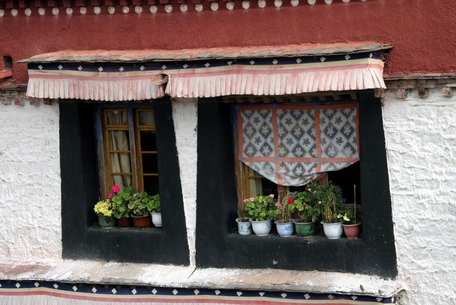 大昭寺里僧舍的窗臺(tái)上擺滿(mǎn)了鮮花。