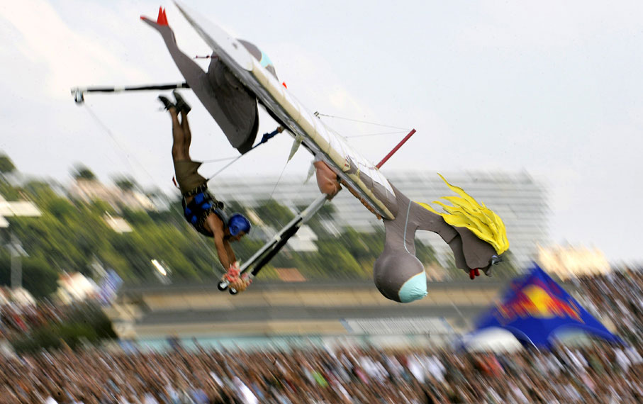 9月27日,法國馬賽趣味飛行器大賽舉行。比賽規(guī)則簡(jiǎn)單,誰能在落水之前飛得更遠(yuǎn)誰就是冠軍,但參賽選手絞盡腦汁,把自己的飛行器扮成各種古怪摸樣。圖片來源:中國新聞網(wǎng)